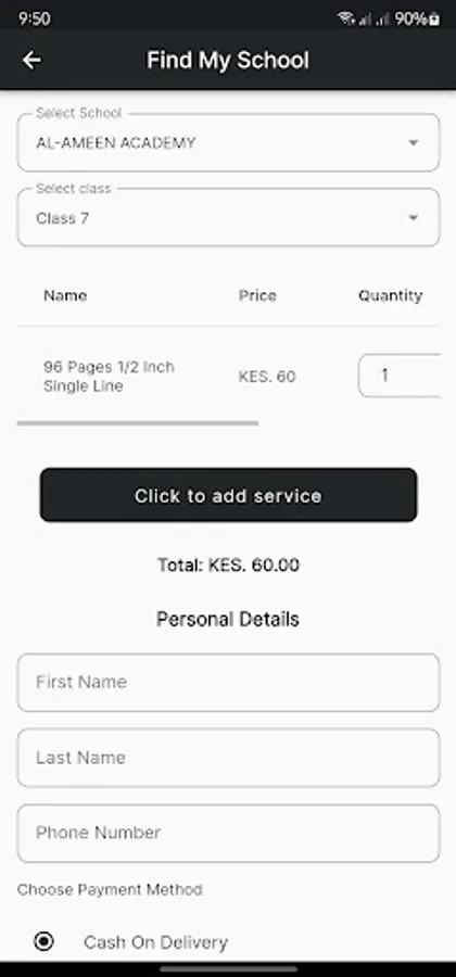 1. Find My School - Choose your school and class and we shall provide you with the class requirements. State the required quantity and delivery address. Choose your desired payment method.
