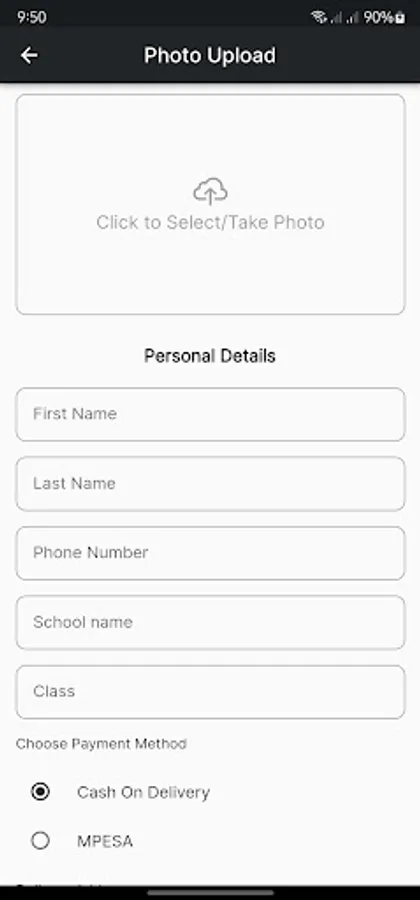 2. Photo Upload - Alternatively, using your phone camera, upload the class requirements, state the quantity required, and provide the delivery address. Choose your desired payment method.