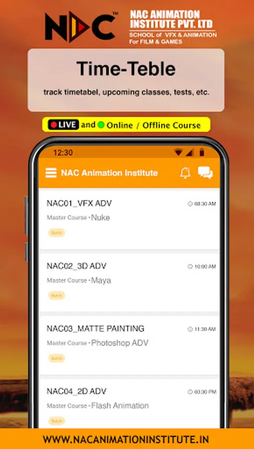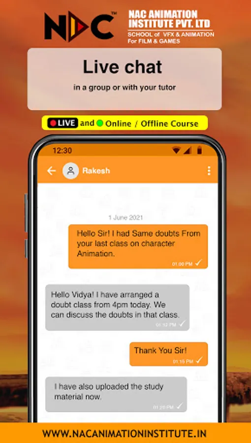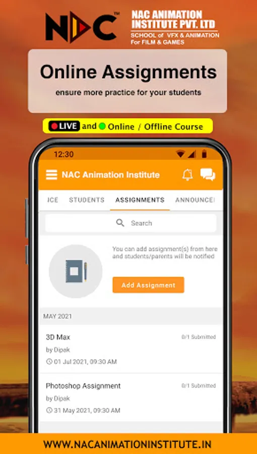 NAC Animation Institute is an online platform for managing data associated with its tutoring classes in the most efficient and transparent manner. It is a user-friendly app with amazing features like online attendance, fees management, homework submission, detailed performance reports and much more- a perfect on- the- go solution for parents to know about their wards’ class details. It’s a great amalgamation of simple user interface design and exciting features; greatly loved by students, parents, and tutors.