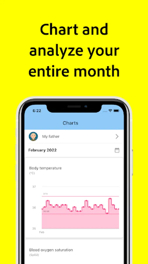 Target values for body temperature, blood oxygen saturation, blood pressure, and pulse rate can be set for each family member.