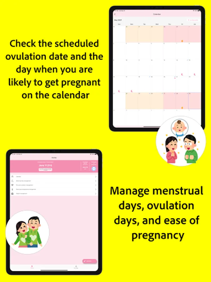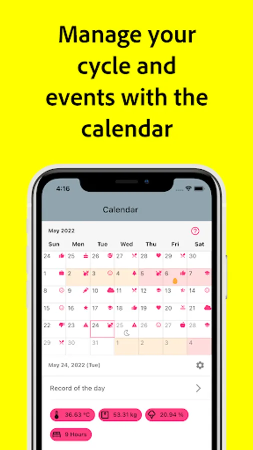 Record your menstrual period, basal body temperature, and weight every day, and the app will create a calendar for you.