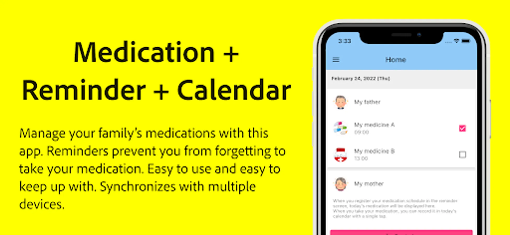 Simple and easy to use family medication management app.