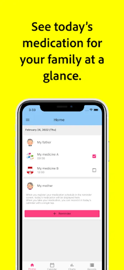 You can flexibly set reminders for each family member's medication.