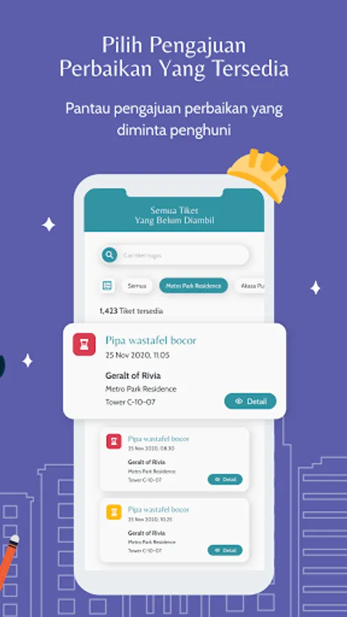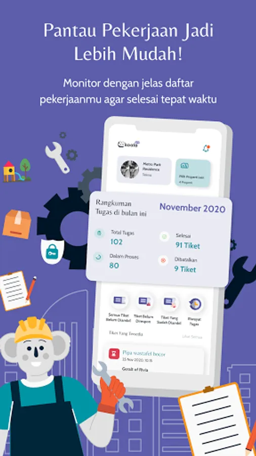 Koala Pro Operasional is here to handle complaints / proposals for improvements from residents. All repair requests from residents can be easily managed by technicians so that they can be completed quickly!