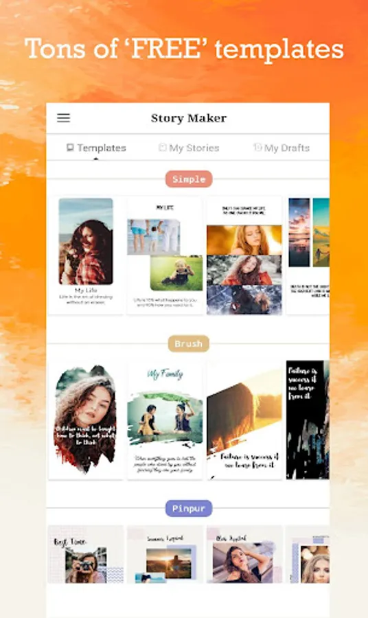 Story Maker app contains lots of well design templates so you can easily create beautiful stories to share in the Instagram story, Snapchat story, WhatsApp status or Facebook story and etc.