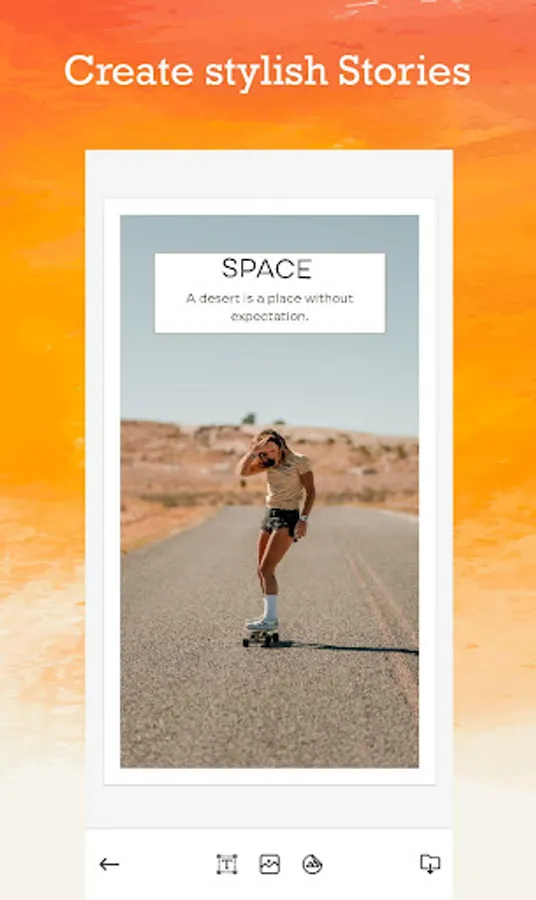 Create beautiful full-screen stories for Instagram, Snapchat, Facebook and WhatsApp. Our app provides tones of templates that are categorized based on moods, style and occasions.