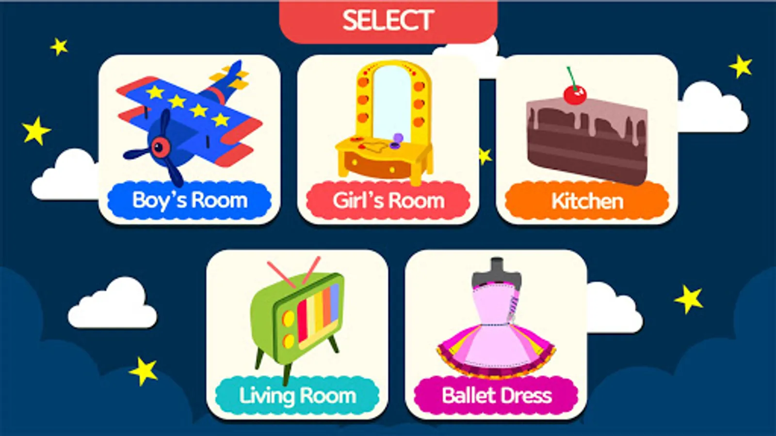 1.By viewing camera, experience girl’s stuff, boy’s toy, kitchen supplies, and ballet dress etc in 2D & 3D and you can meet your own colored room.