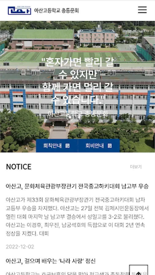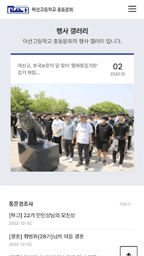 This application is freely available to all alumni who graduated from Asan High School, and supports free communication and network strengthening between Asan High School alumni members, such as introduction and announcements of the general alumni association, alma mater news, event information, alumni congratulations and condolence notifications, and alumni company introduction.
