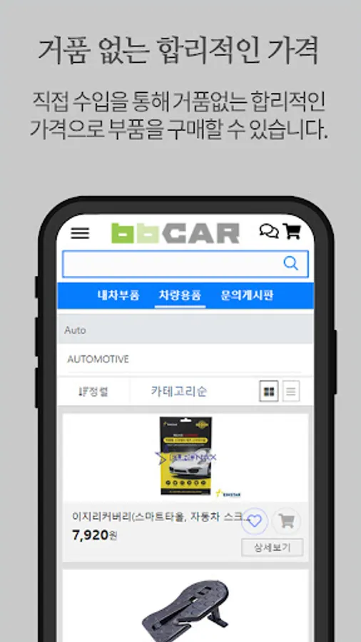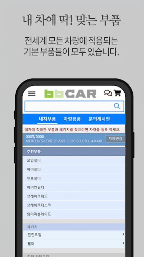 BBCA (www.bbcar.co.kr), a shopping mall specializing in imported car parts, is a specialized shopping mall dealing with discs, filters, and various supplies necessary for European, American, and Japanese vehicles.