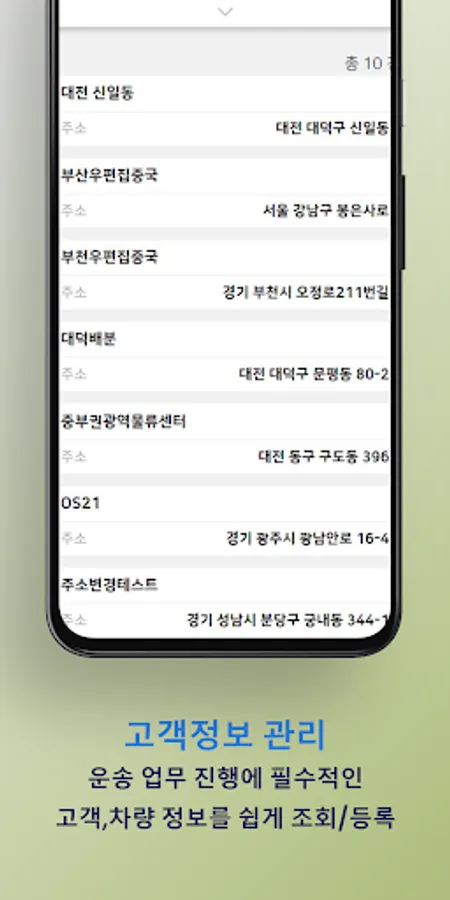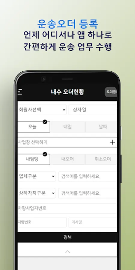 Customer information (shipper, customer company, borrower, loading/unloading location) can be inquired and entered easily, and new customers can even register directly from the app.