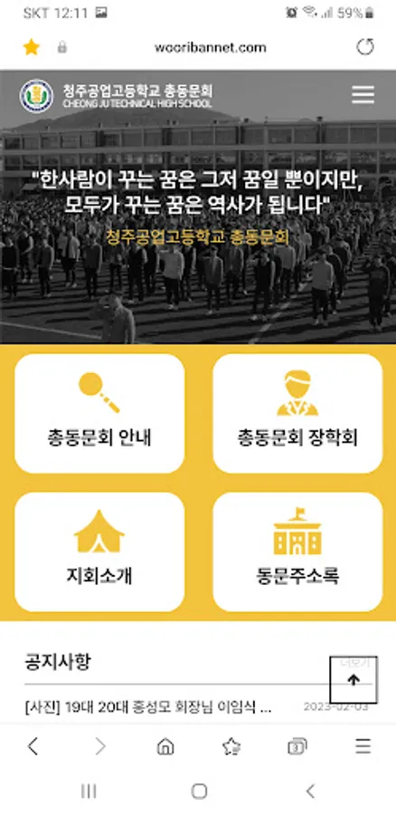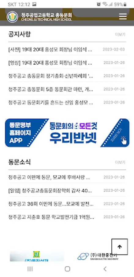 This application is freely available to all alumni who graduated from Cheongju Technical High School, and supports free communication and network strengthening between Cheongju Technical High School alumni members, such as introduction and announcements of the general alumni association, alma mater news, event information, alumni congratulations and condolence notifications, and alumni company introductions. .