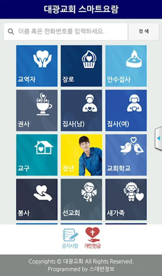Pastors, elders, and smartphone applications such as winding the cradle of all the saints, deacons and guyeokjang (shepherd), the teacher can check on your smartphone.