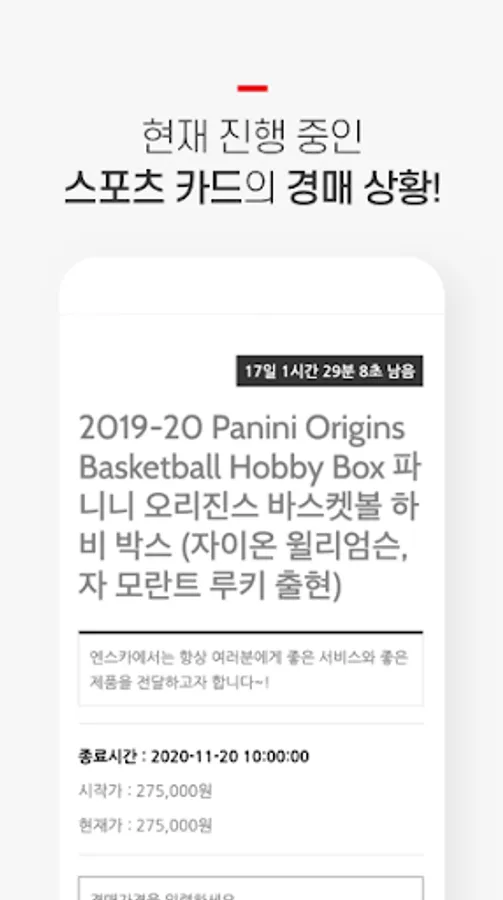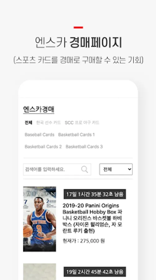 Live Break This is an application that connects you to a single card auction provided by Enska, a sports card specialist, and a site where you can purchase sports card boxes such as basketball, soccer, and baseball sold at the Enska shop.