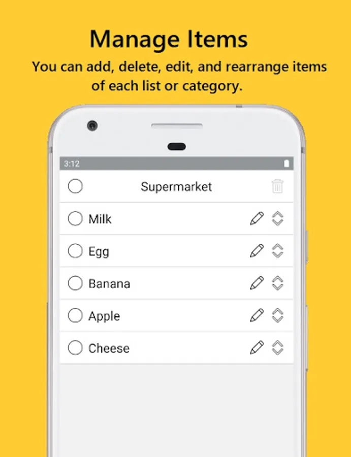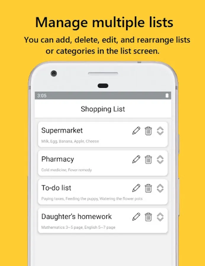 You can add, delete, edit, and rearrange lists or categories in the list screen.
