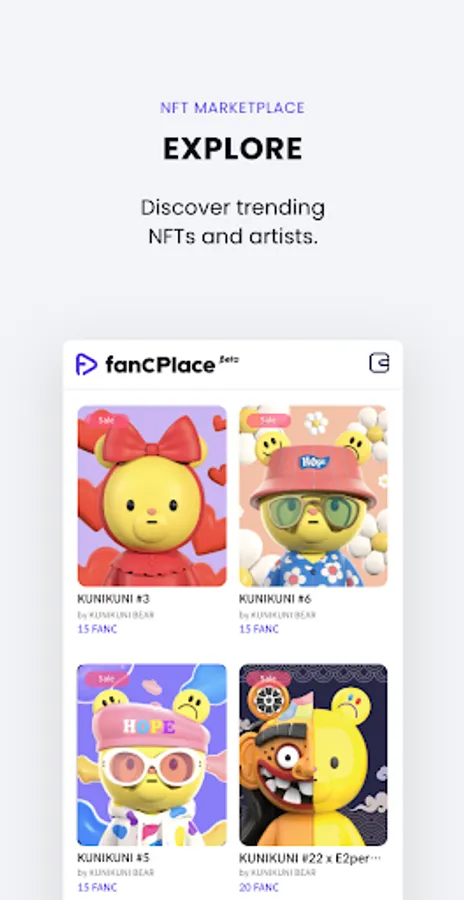 fanC NFT 마켓 플레이스를 통해 사용자는 인플루언서와 직접적인 콘텐츠 교류를 할 수 있고, 팬덤 활동을 즐기거나 크리에이터가 되어 활동할 수 있습니다.