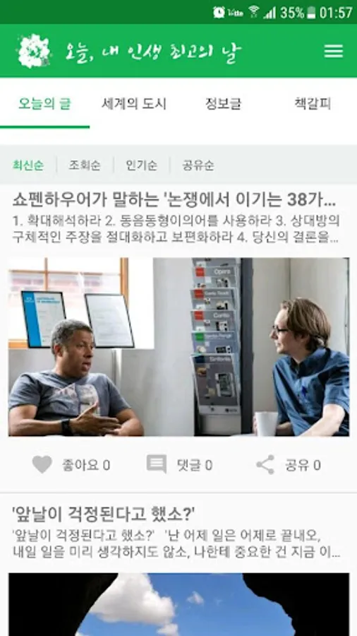 - In 'Today's Post', we share articles that give us strength to live each day in the morning.