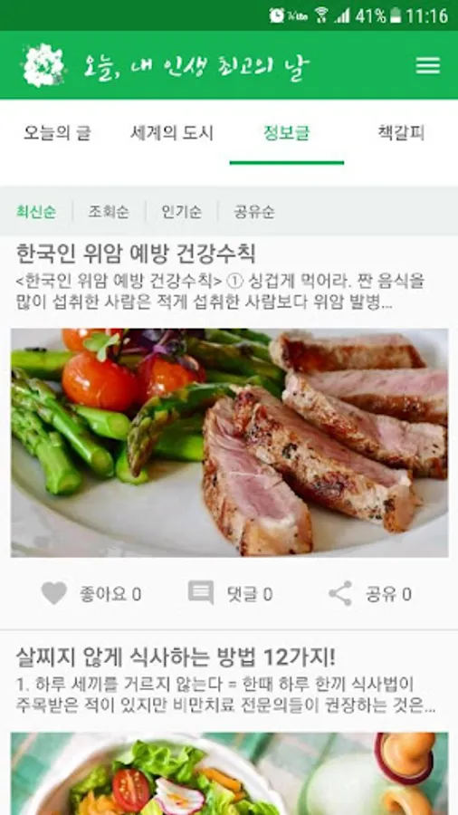 'Today, the best day of my life' is a good article, photo, and sharing app that gives you strength to live a busy day.