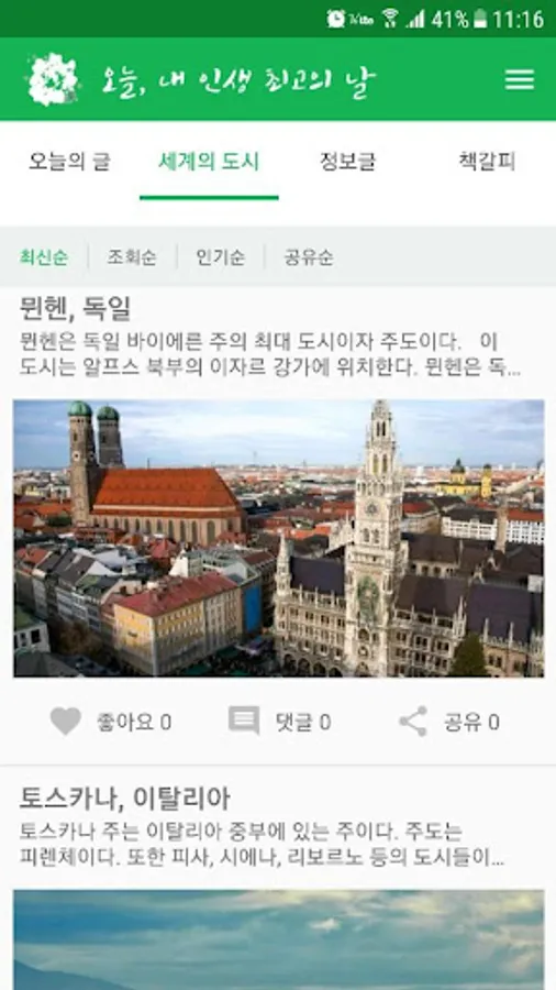 - In 'Cities of the World', photos of cities around the world and information about cities are shared.