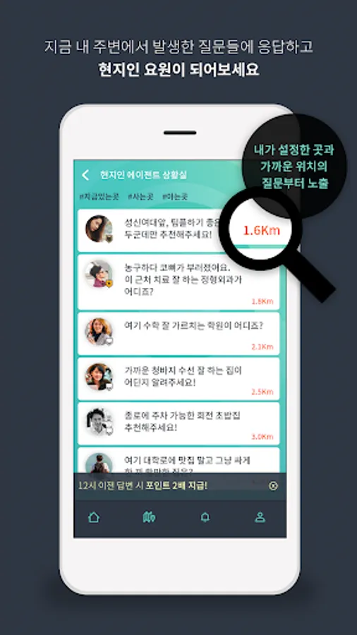 -Only people who are within 3km are exposed to the question you entered.