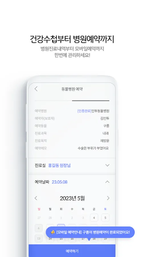 - You can check the companion animal's visit/vaccination history/medication/expected date of visit by linking with the veterinary hospital's electronic chart.