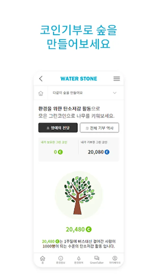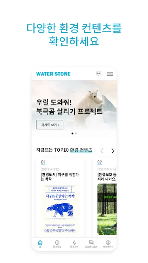 Introducing WATER SOTNE, an environmental application for youth that can provide various information and activities about the environment. In WATER STONE, you can meet the latest environmental issues with colorful contents suitable for 10 trends such as card news, short videos, and postings. It is an environmental SNS where you can gather and communicate with your peers who are interested in the environment, and you can also access information and activities that are connected to the environment-related education/career. You can even feel the reward of completing eco-friendly activities and leading up to donations. The more you participate in various activities within the APP, the more fun green coins you can donate are accumulated and you can experience fun promotions.