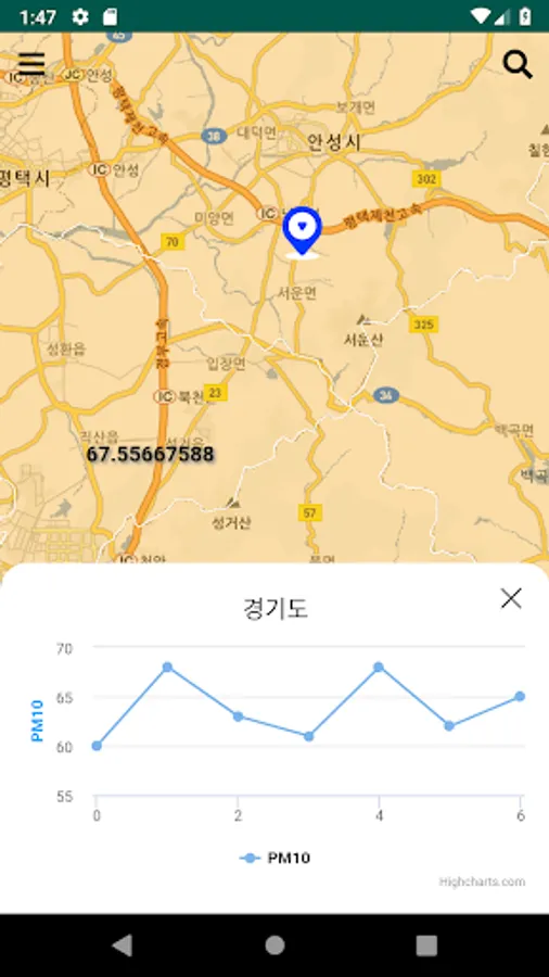 Mise Naeil measures and report fine dust(PM10) levels by location and region by using the latest deep learning technology.