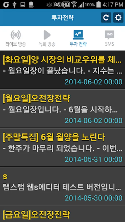 Broadcast live and recorded broadcasts, been composed of investment strategies and