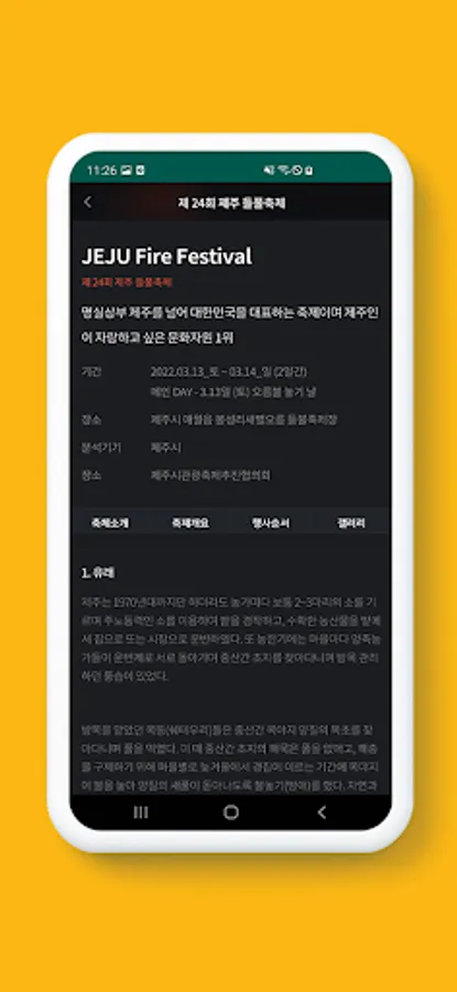Starting with the Jeju Wildfire Festival, you can check local festival information and festival schedules.
