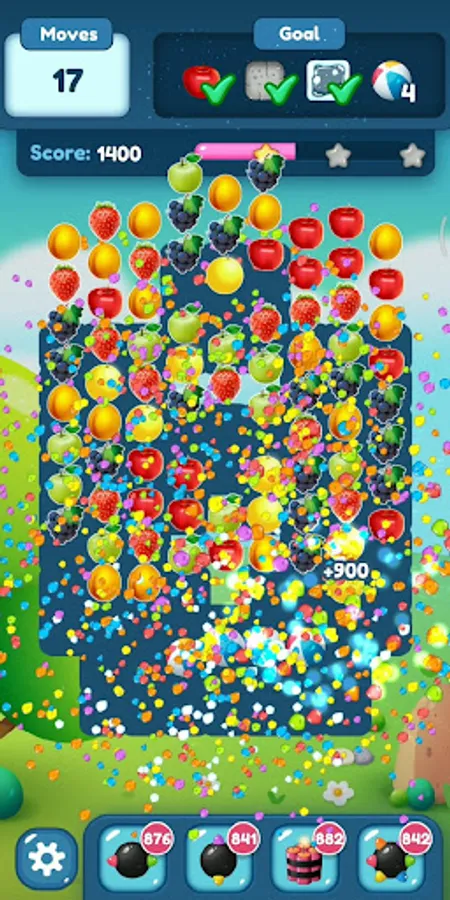 Immerse yourself into this yummy Fruits Bomb where garden strawberry, green apple, fresh blueberry, juicy orange and delicious grapes are everywhere.