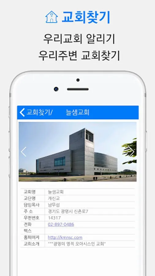 Church map view and simple church information and photos