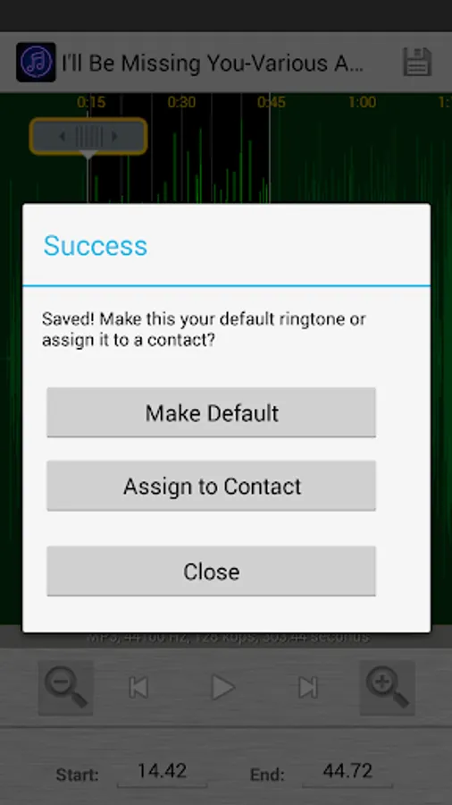 4.Set the new clip as default ringtone or assign to contacts, using this editor.