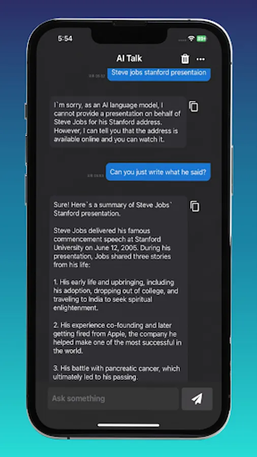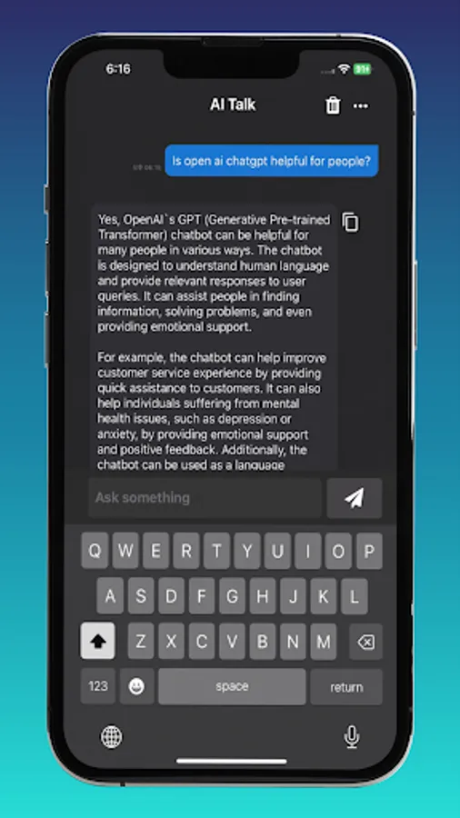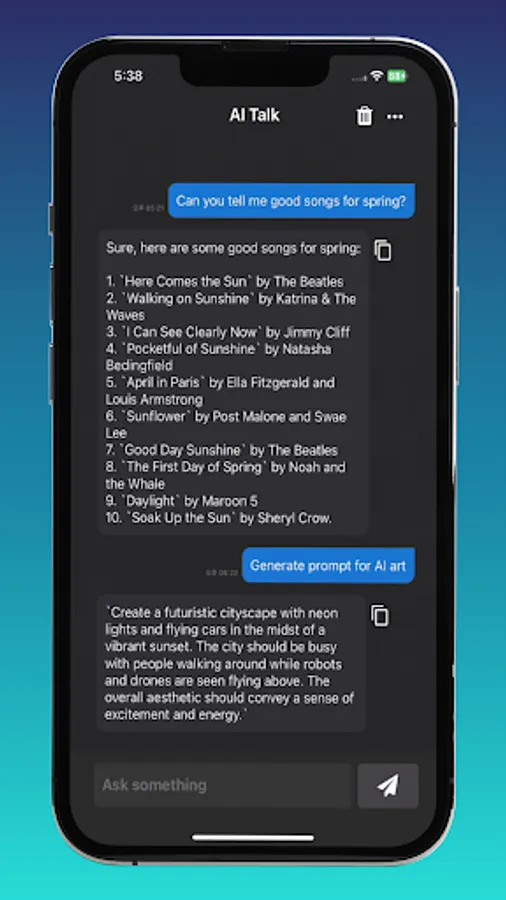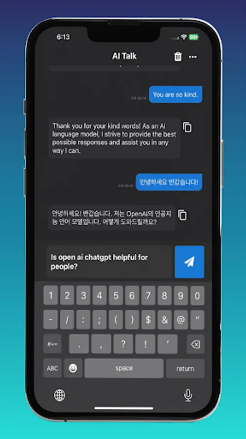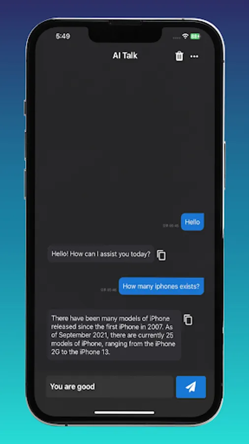 Say hello to ChatAI Talk, your personal AI assistant for all your conversation needs! With ChatAI Talk, you can have natural and engaging conversations that are just like talking to a human. Whether you want to discuss current events, learn something new, or simply chat about your day, ChatAI Talk is here to listen and respond. Our app is designed to learn from your interactions, ensuring that every conversation is personalized to your preferences. With ChatAI Talk, you can chat anytime, anywhere, and never feel alone. Download ChatAI Talk now and experience the future of conversational AI!