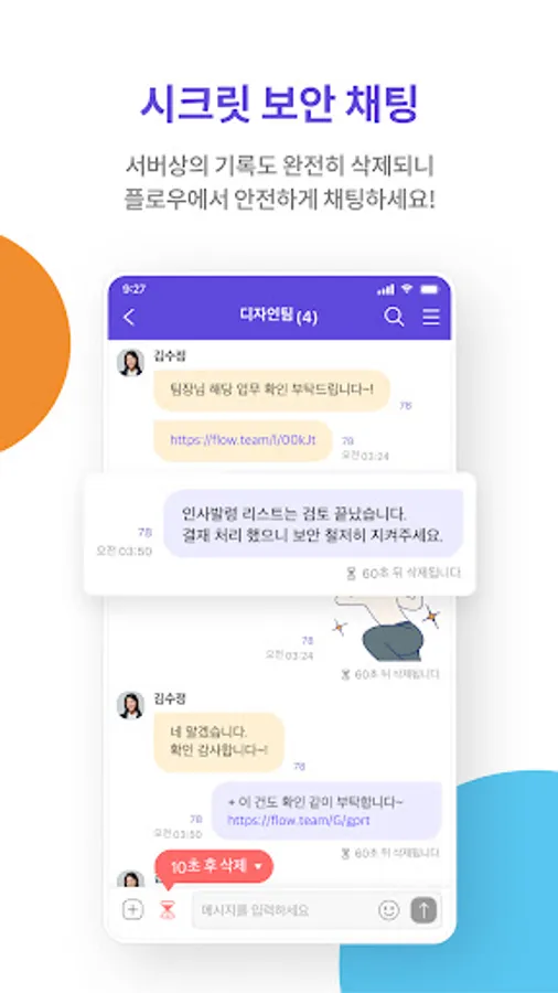 ① In-house chatting: In-house messenger that is separated from privacy and thoroughly protected