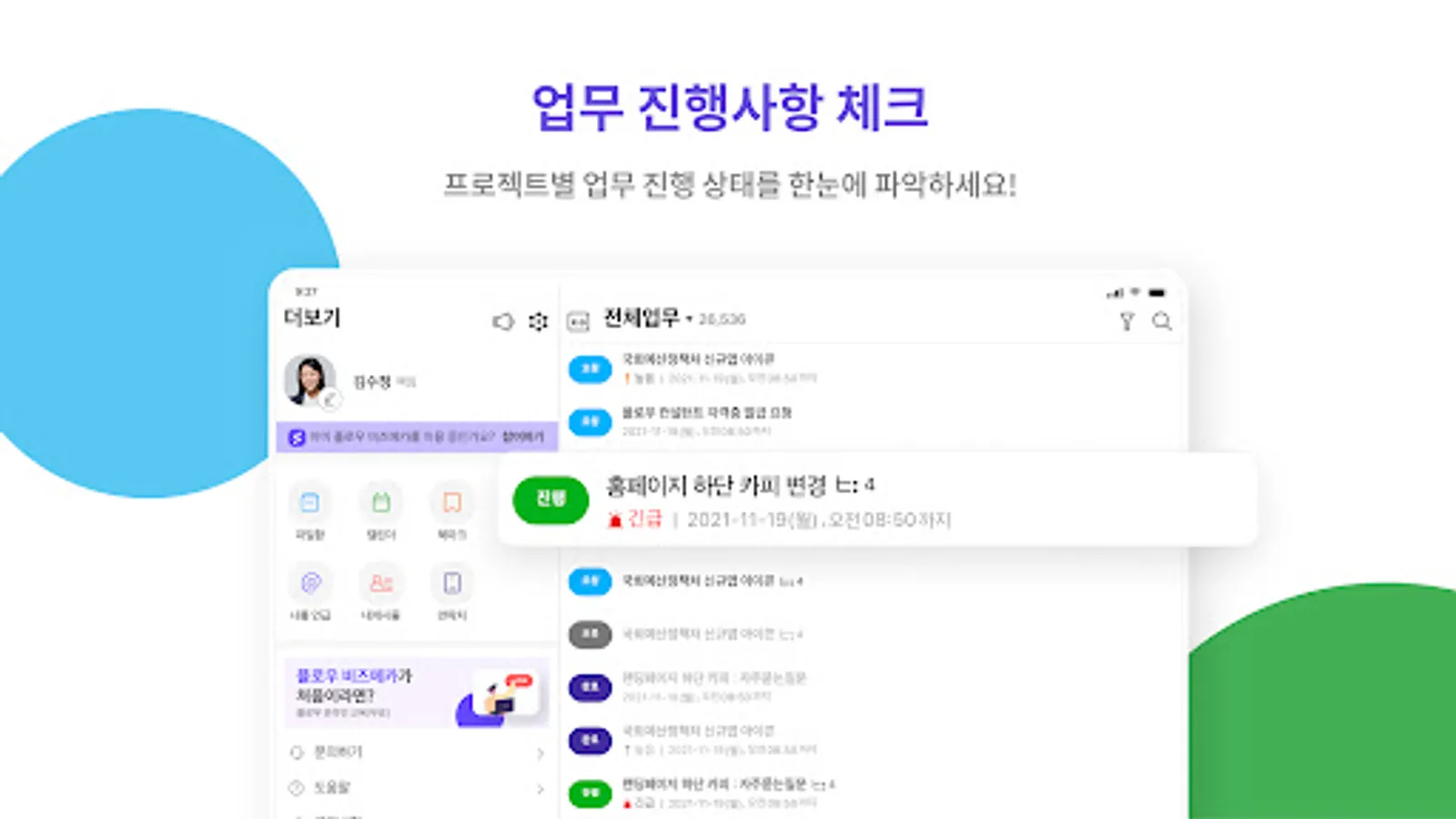 ⑤ Utilization function: Various utilization functions such as checklist, schedule and video conference, work report, etc.