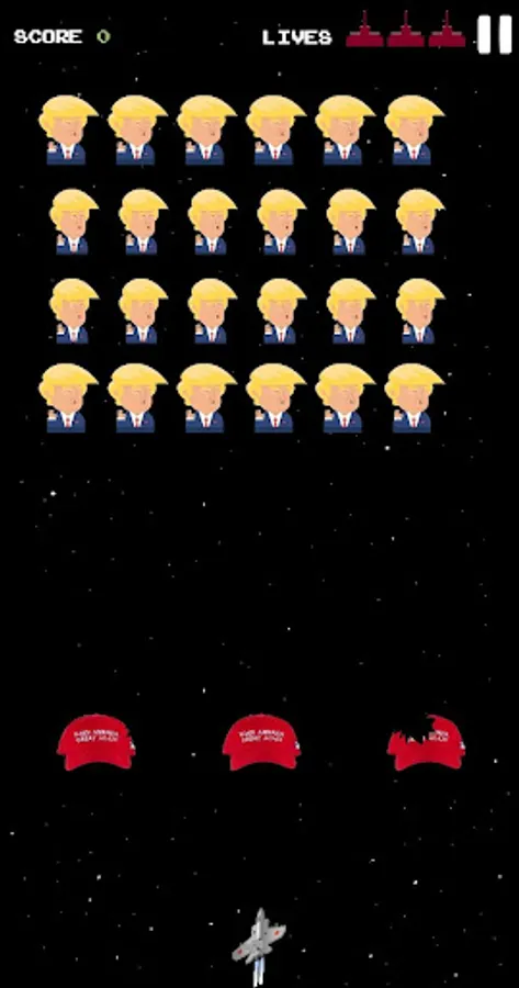 Space Invaders is considered one of the most influential video games of all time. humoristic version staring Donald Trump.