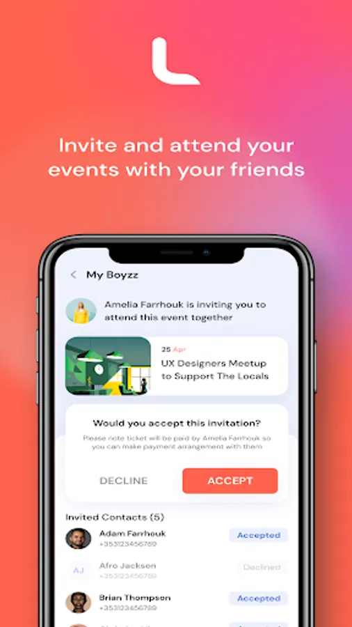 ● We give you the tools to determine pricing, see how many people have accepted your event invite in real time, withdraw invitations and track sales in real time.