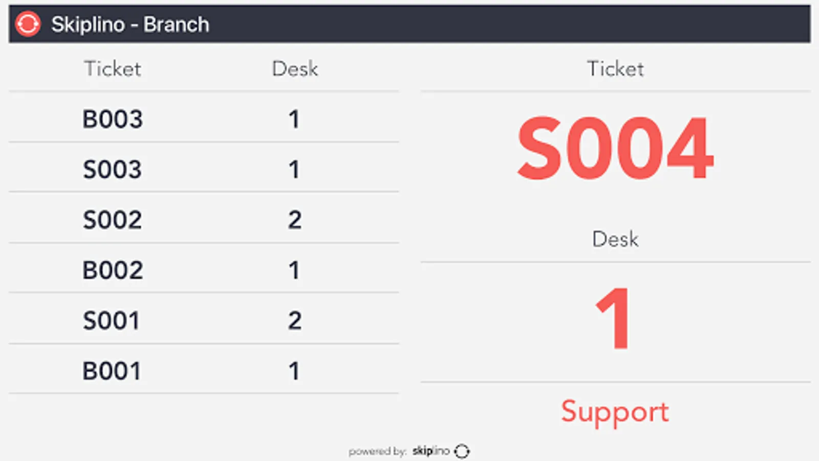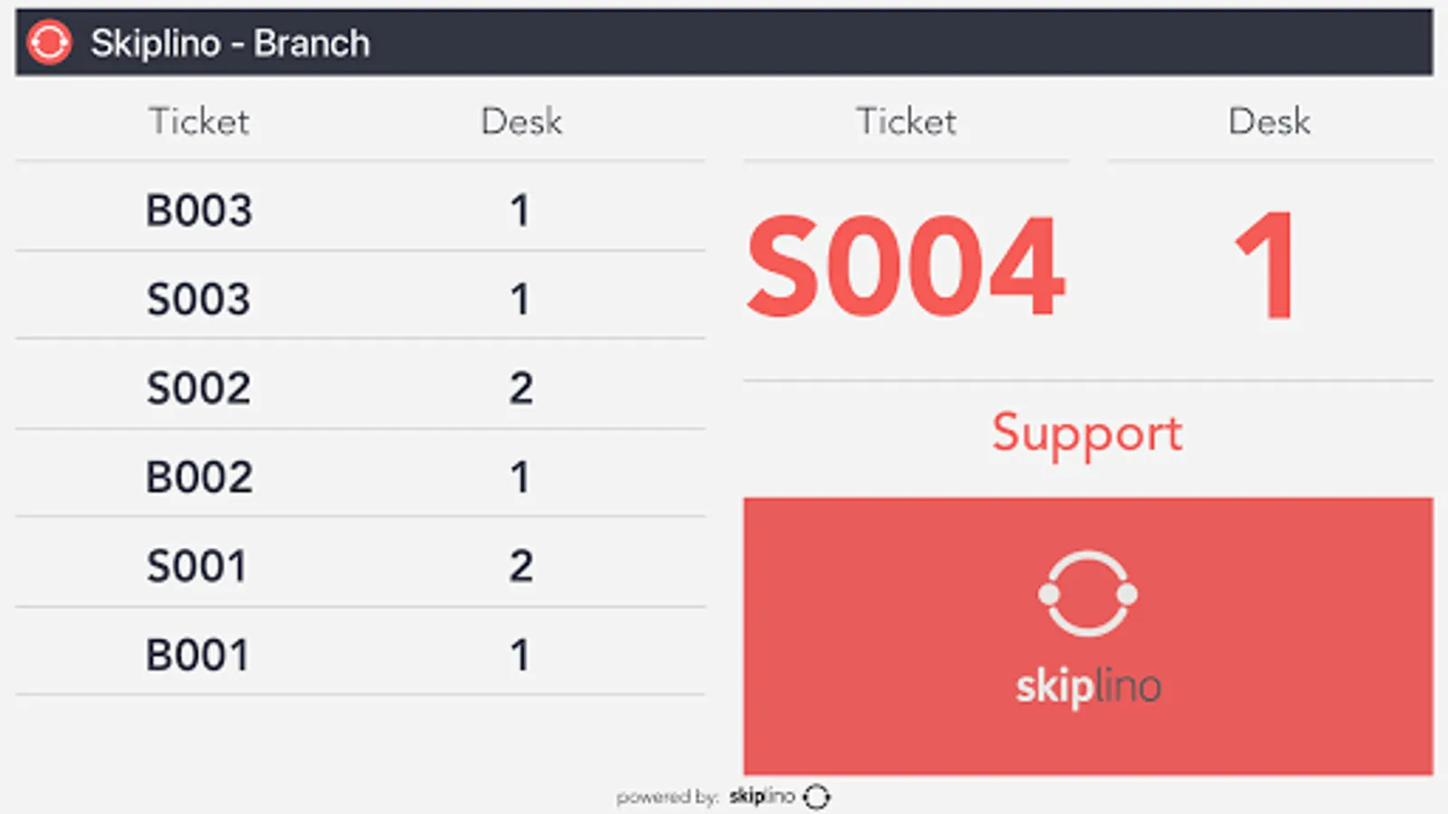 With Skiplino Branch you can now make sure that you will not worry about the traditional way of queuing. If your customer do not own a smart phone, or they just do not want to get in queue remotely they can still use Skiplino Branch. This application can be installed on your devices and made available for your customers to use.