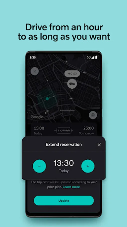 ‣ Update your reservations as your plans change, on the go. Return the car early and we will deduct up to 1h.