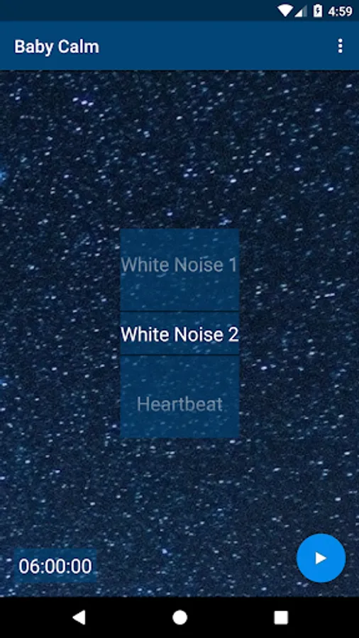 The app allows you to set one of the two white noise versions or a heartbeat sound and plan it to run for a certain period of time. Afterwards your phone will switch off when the baby is already sleeping