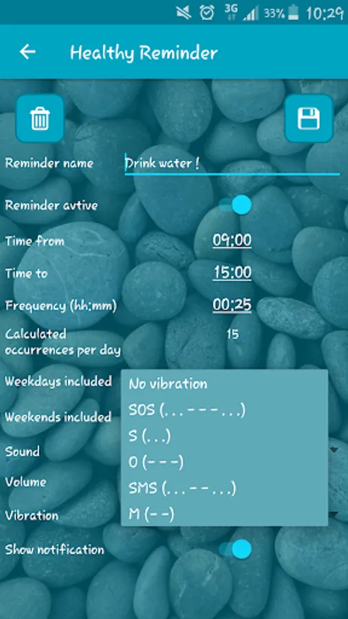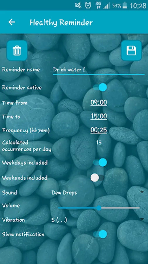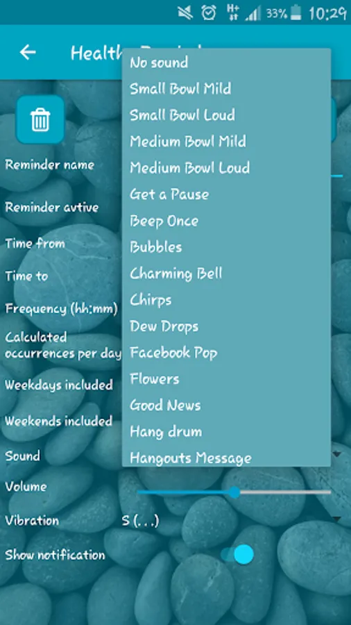 - possibility to choose your own custom reminder sound from MP3, OGG, WAV files from your phone