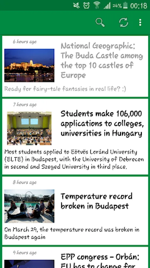 The news feeds are local portals with news from Hungary. Application in a user-friendly way allows to browse news published there.