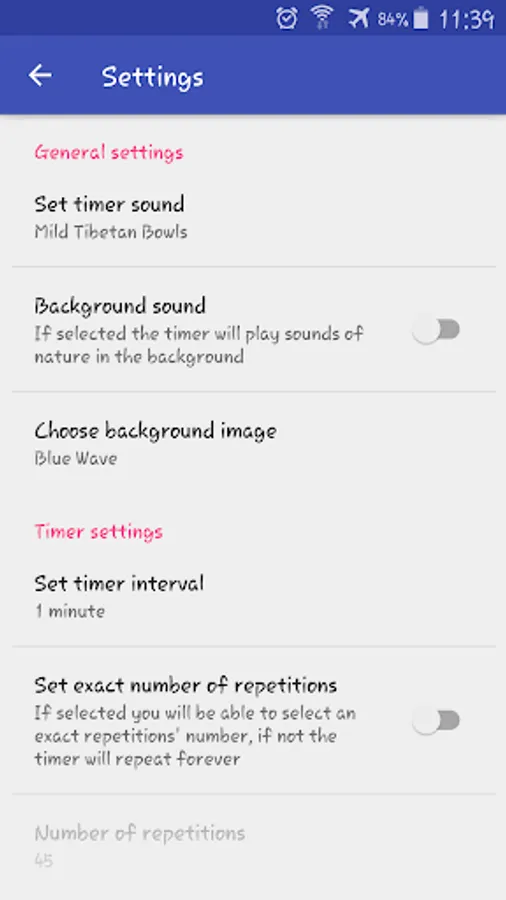 - in case the fixed number of repetitions is set, the timer will let you know about the finish