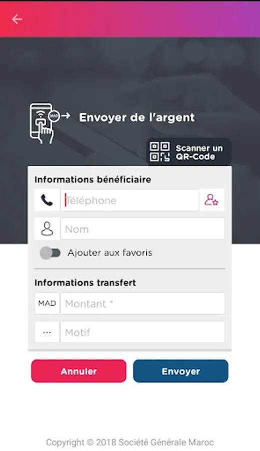 - Transfers of money from your wallet to another Société Générale wallet, simply by using the recipient's phone number;