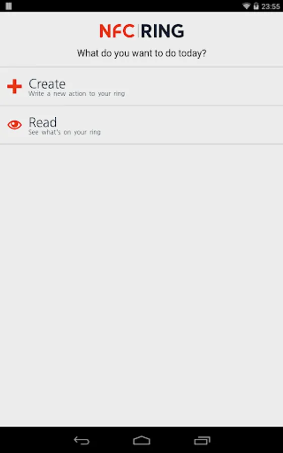 Read from and Write to your NFC Ring®. Create links to your favorite social network profile or read your current NFC Ring®.