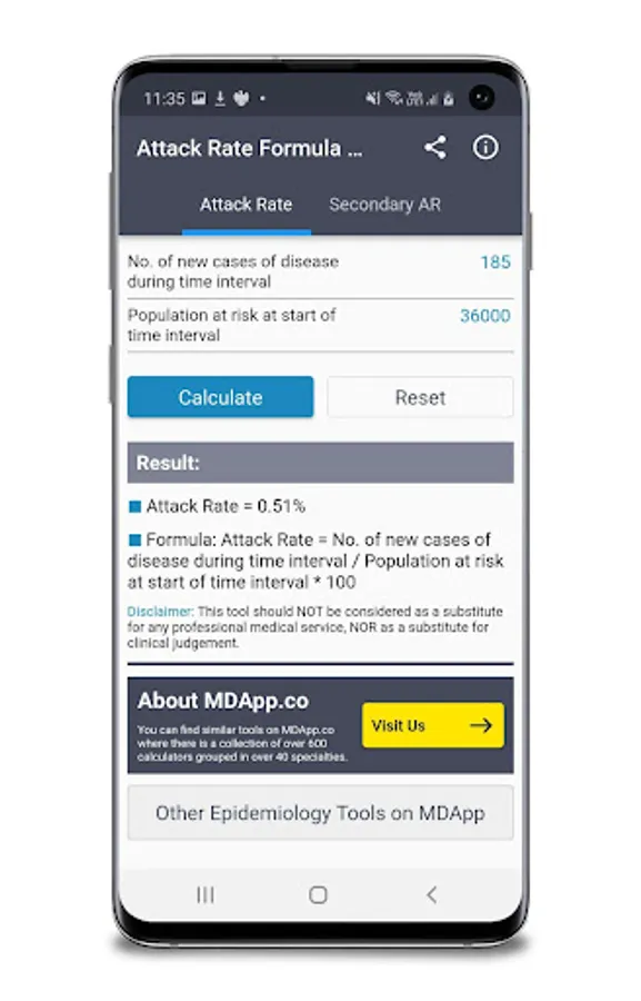 This Attack Rate Formula Calculator is the ideal app for Epidemiologists because it can help determine the risk of contracting a disease during an outbreak.