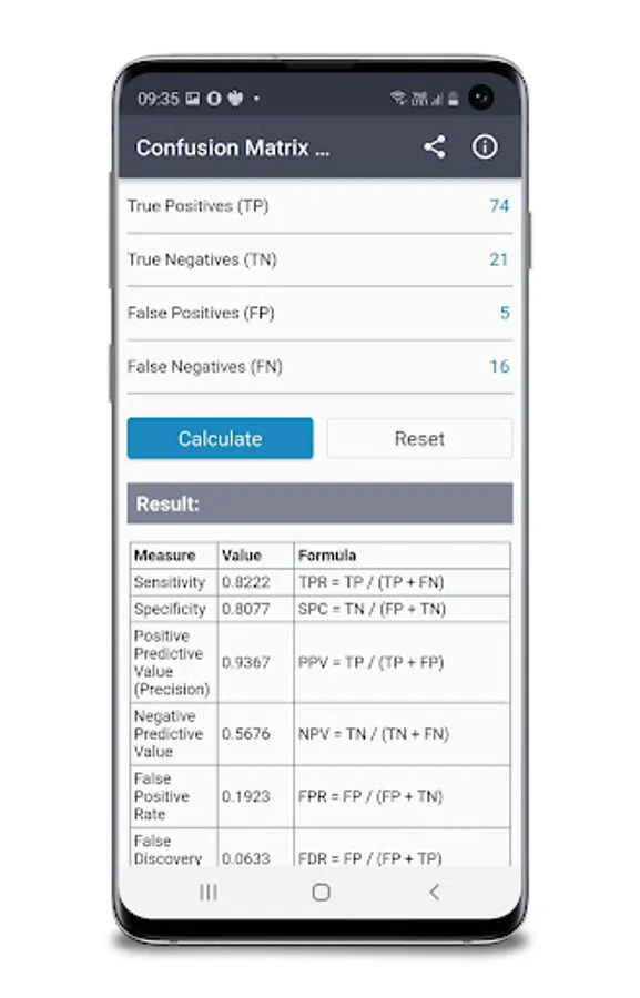 This Confusion Matrix Calculator determines several statistical measures linked to the performance of classification models such as: Sensitivity, Specificity, Positive Predictive Value (Precision), Negative Predictive Value, False Positive Rate, False Discovery Rate, False Negative Rate, Accuracy & Matthews Correlation Coefficient.