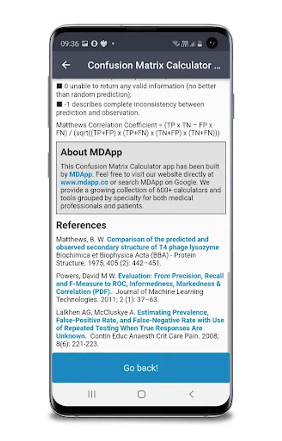 Matthews Correlation Coefficient (MCC) describes how changing the value of one variable will affect the value of another and returns a value between -1 and 1: