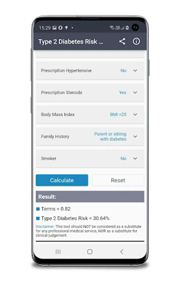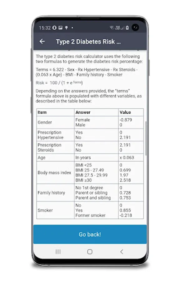 The type 2 diabetes risk calculator uses the following two formulas to generate the diabetes risk percentage: