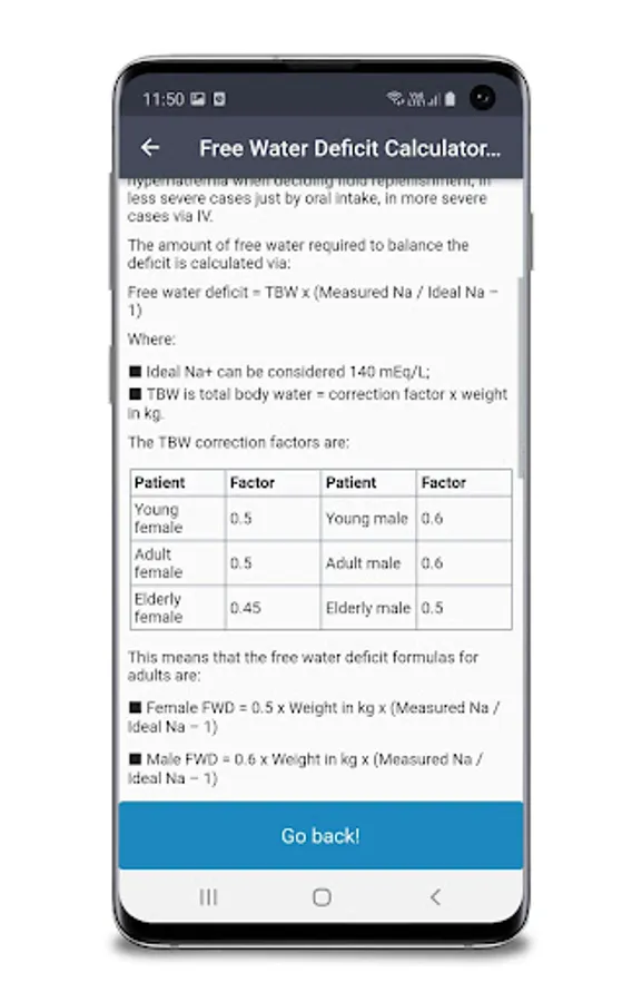 This Free Water Deficit Calculator estimates FWD based on patient data, measured and ideal plasma sodium.