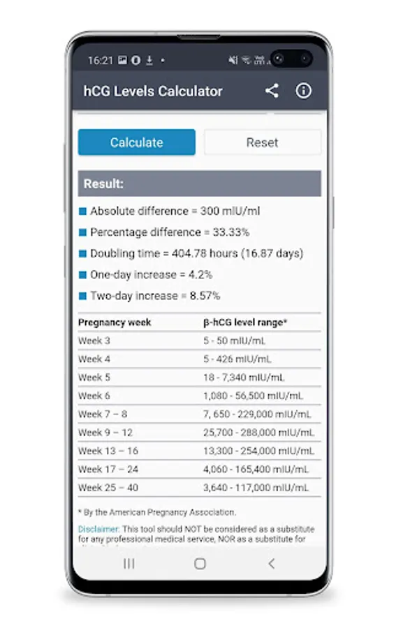 This hCG Levels Calculator determines doubling time and day increases based on two subsequent levels of β-hCG to assess viability of early intrauterine pregnancies.